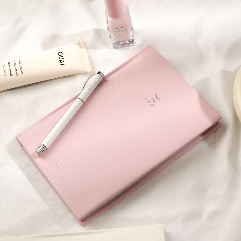 Stay inspired every day with our stunning 'Trust the Process' notebook. Featuring silver foiling on the cover and silver-edged pages, this luxurious notebook is as beautiful as it is functional. With 250 thick, lined pages, a silky ribbon, and a soft PU leather cover, it’s the perfect place to record your thoughts, ideas, and aspirations. Whether you’re planning, journaling, or just getting creative, every page invites you to take those small steps toward something bigger.