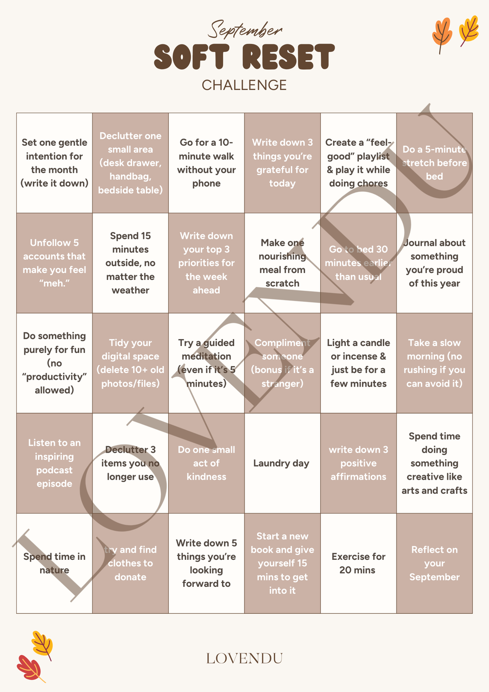 Printable: September Soft Reset Challenge